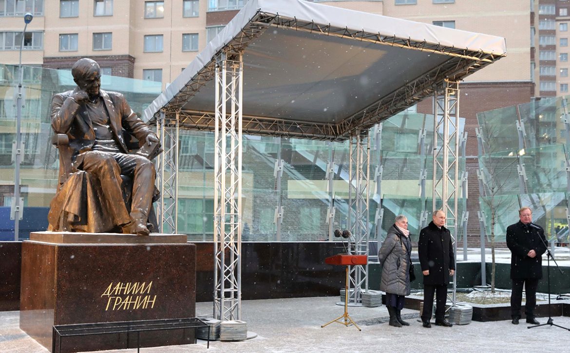 Путин открыл памятник писателю Гранину в Петербурге